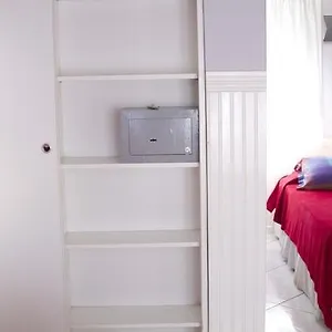Os quartos são completos com cofre pessoal, vestuário e máquinas de café/chá, bem como banheiros totalmente equipados com banheiro separado e chuveiro. Os quartos também estão equipados com sofá-camas.